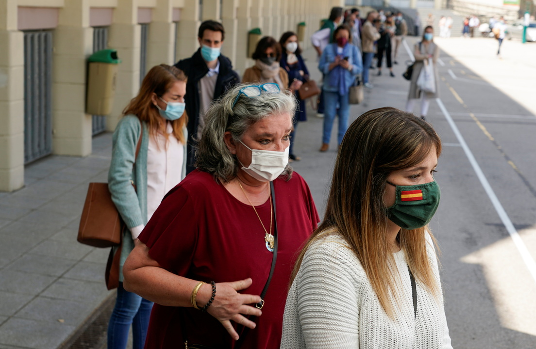 Una de las imágenes de la jornada ha sido la de las largas colas a las puertas de los colegios electorales, debidas no tanto al aumento de la participación sino a los protocolos covid que incluían el lavado de manos, la utilización de una nueva mascarilla sobre la que portase cada votante y la distancia de seguridad entre personas para evitar las aglomeraciones.
